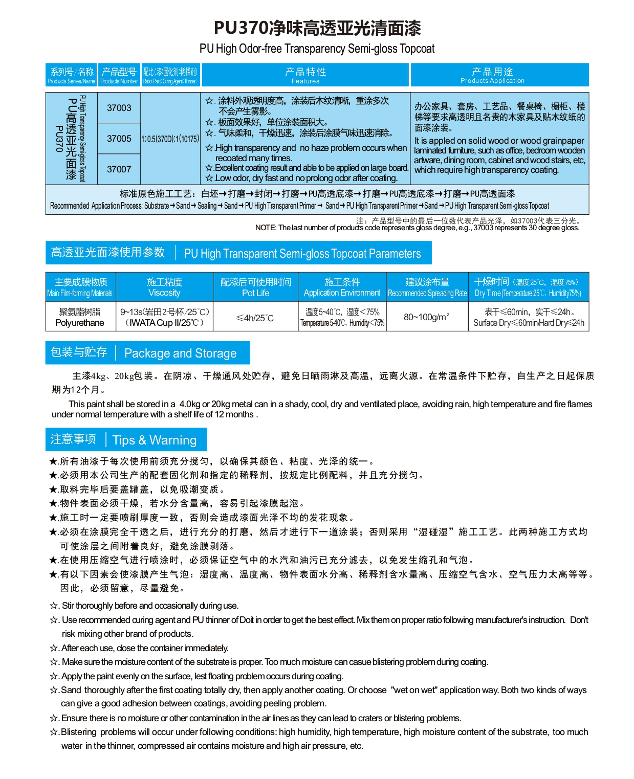 • PU High Odor-free Transparency Semi-gloss Topcoat