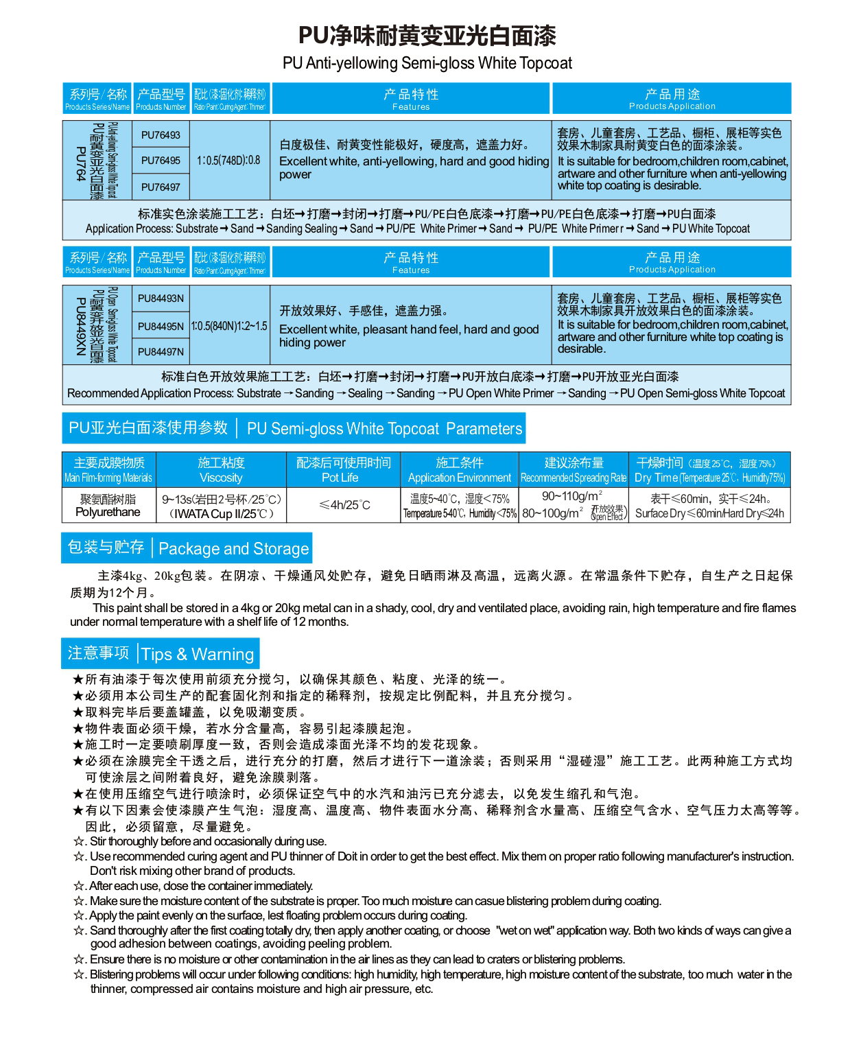 • PU Anti-yellowing Semi-gloss White Topcoat