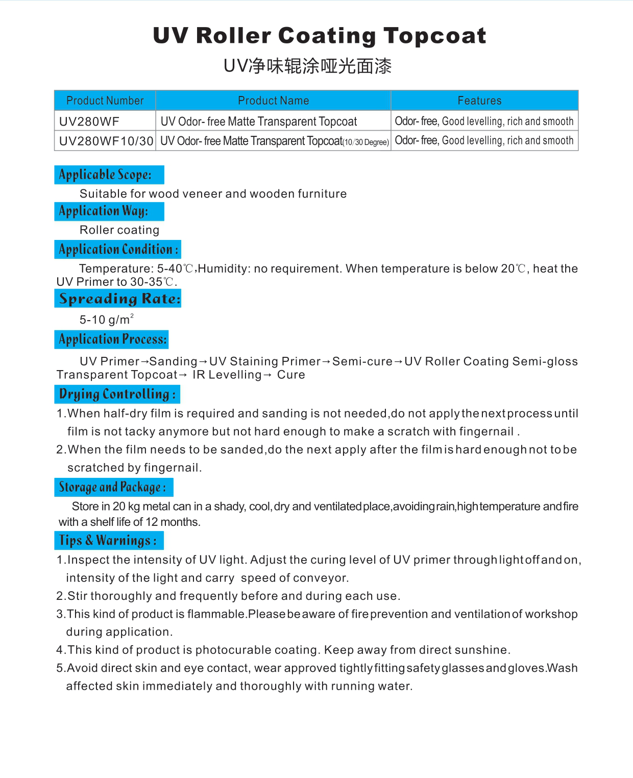 • UV Roller Coating Topcoat